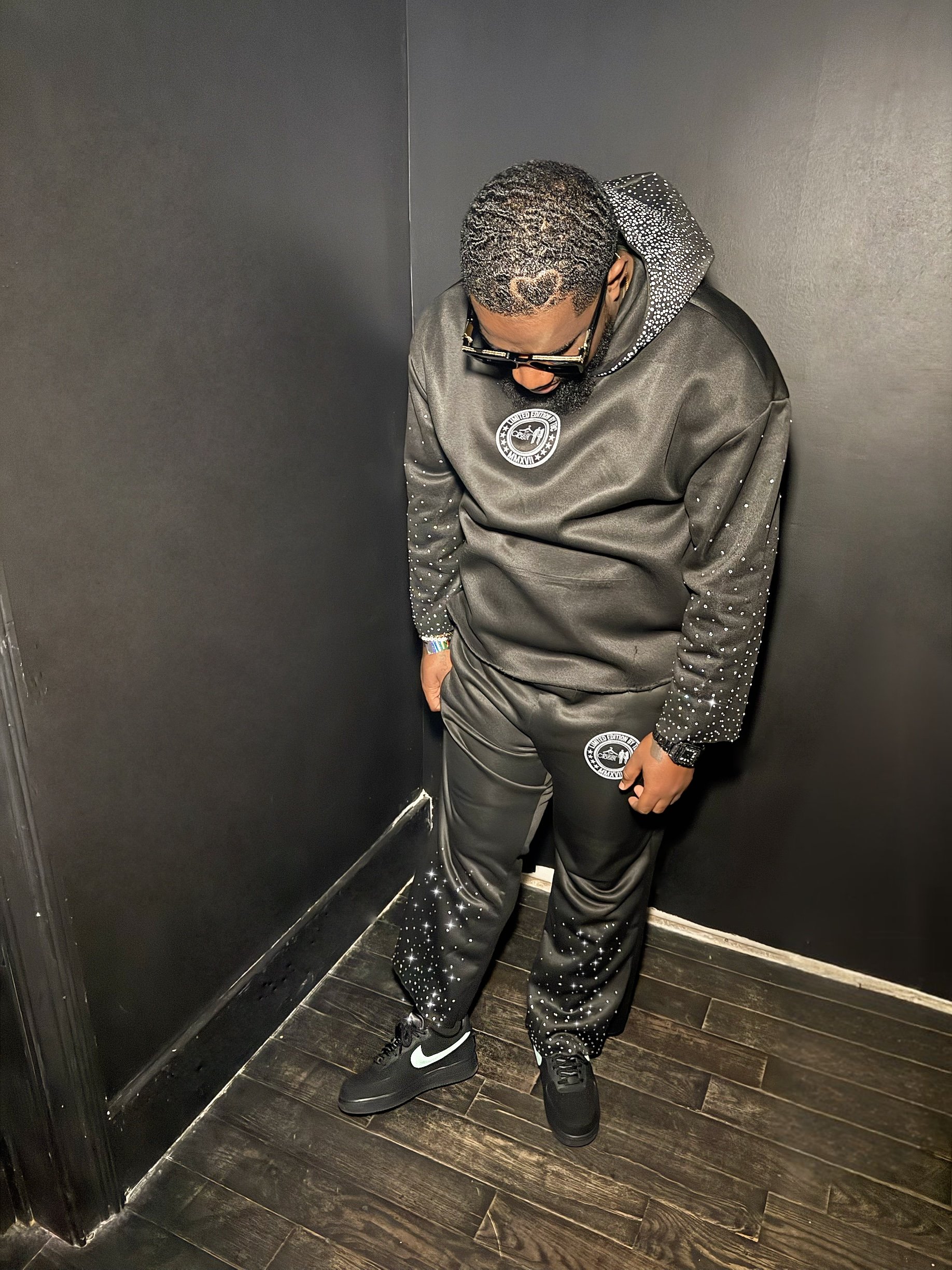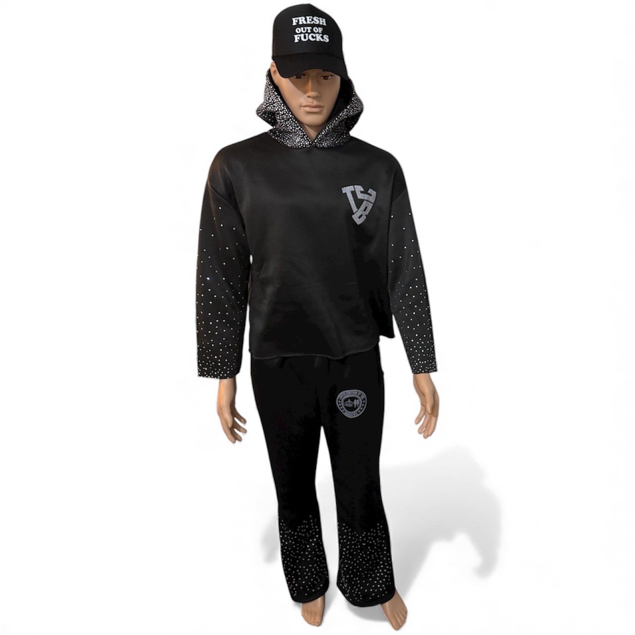 Own the spotlight with The Bachelor’s Closet Rhinestone Two-Piece Set — a luxe take on the classic tracksuit. Designed for those who move with confidence, this set combines streetwear comfort with premium detailing. Every rhinestone catches the light, reflecting your energy and your style.